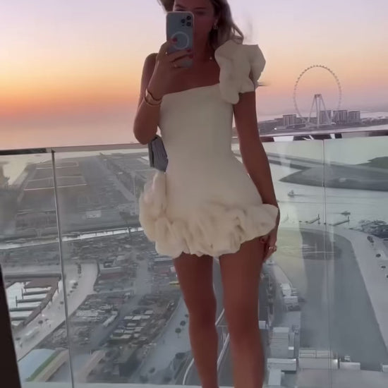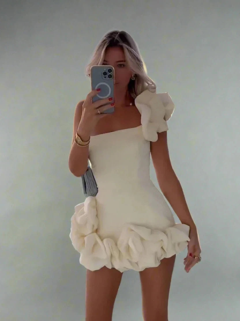Learn MoreFeaturing a design adorned with a dramatic oversized flower detail, the Nicole Mini Dress instantly captures attention. Tailored to perfection, it boasts a fitted bodice that accentuates the waist and flows into a unique, voluminous ruffled hemline that adds a touch of whimsy and flair. The soft, creamy hue of the fabric enhances its luxurious feel, making it the perfect choice for special occasions where you want to stand out. Whether you’re attending a rooftop party at sunset or a chic evening event, this dress ensures you’ll make a lasting impression.
